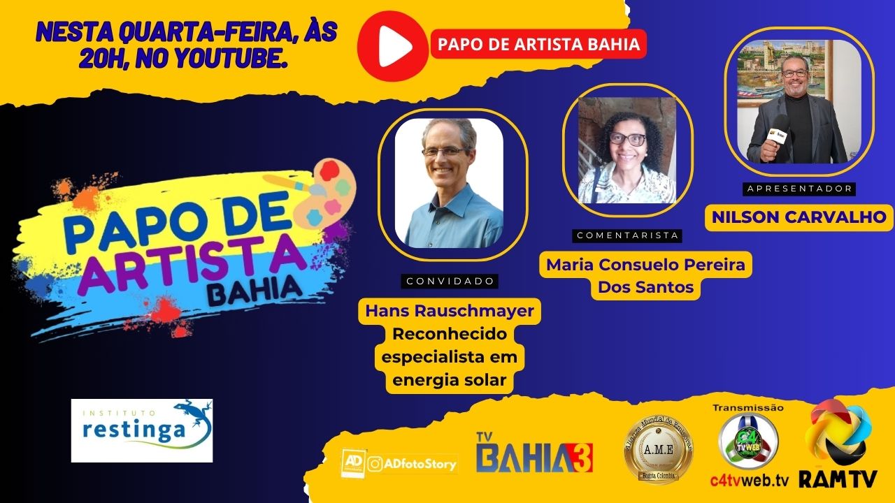 O convite ao tradicional programa Papo de Artista Bahia do jornalista Nilson Carvalho rendeu uma conversa rica e abrangente sobre energia solar. Junto com a comentarista Maria Consuelo dos Santos, parceira de longa data.