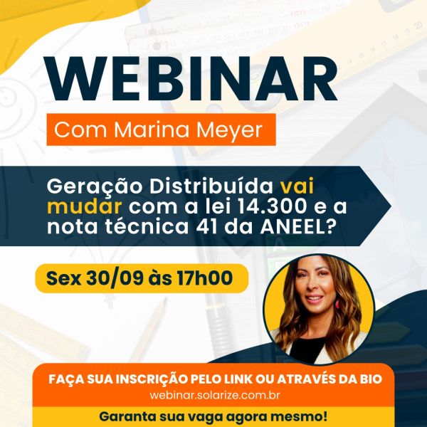 Gravação do webinar: A Geração Distribuída vai mudar com a lei 14.300 e a nota 41 da Aneel?