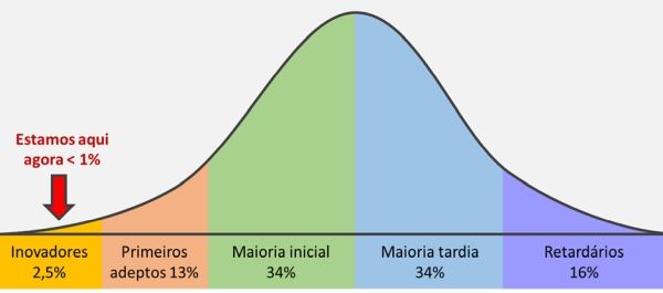 Isto quer dizer que estamos vendendo os sistemas ainda para os inovadores, aqueles antenados com um impulso forte de abraçar novidades. Atrás deles virá a grande massa popular.
