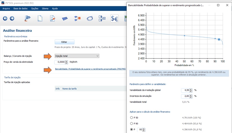 - Nos resultados, essa probabilidade não aparece no resultado energético, mas na aba "Análise financeira"