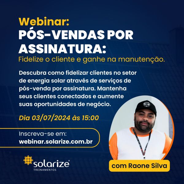 No webinar vamos apresentar um parceiro que estudou essa cultura e desenvolveu a pós-venda por assinatura na energia solar. Após ... anos de experiência regional, ele agora está expandindo o negócio em nível nacional, procurando integradores a participar da história de sucesso.