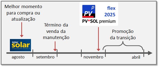 Atualizando agora, você ganha novos recursos, como a integração do Google Solar que está prestes a sair do forno, e você garante a promoção de transição para o PV*SOL flex. Vamos ver cada caso: